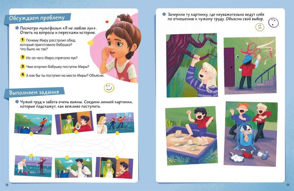 Тетрадь-практикум с веселыми заданиями и полезными историями про Миру и Гору от писательницы и продюсера Натальи Ремиш. Разбор ситуаций в формате комикса, рекомендации и подсказки для взрослых, советы детского семейного психолога. Издание станет отличным подарком детям от 5 лет, их родителям и всем поклонникам мультсериала. Как и все дети, главные герои познают мир, играют, иногда ссорятся и попадают в трудные ситуации: дома, в школе или во дворе. Например: • Что такое обман и каковы его последствия? • Когда и как использовать «волшебные слова»? • Что поможет чувствовать себя уверенно в любом окружении? • Как научиться выстраивать отношения с людьми на основе взаимного уважения? В тетради-практикуме «Хорошие манеры» герои найдут ответы на эти и многие другие вопросы. После каждой истории есть комментарии и советы родителям от психологов проекта про Миру и Гошу. Они помогут разобрать причины поднятых в сказках проблем, проговорить важные моменты и обсудить, как действовать в сложной ситуации в будущем. Закрепить новые знания на практике помогут веселые игры и задания. Издание входит в серию «Про Миру и Гошу» издательства «РОСМЭН». Книги и пособия серии посвящены отношениям внутри семьи и развитию эмоционального интеллекта ребенка: дружба и выстраивание личных границ, создание теплых отношений с близкими, управление эмоциями и многое другое. Придумала полезные истории для детей и взрослых Наталья Ремиш, писательница, журналист, сценарист и продюсер проекта «Про Миру и Гошу».
