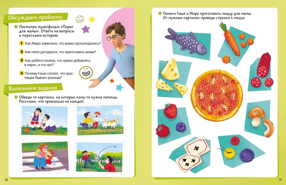 Тетрадь-практикум с веселыми заданиями и полезными историями про Миру и Гору от писательницы и продюсера Натальи Ремиш. Разбор ситуаций в формате комикса, рекомендации и подсказки для взрослых, советы детского семейного психолога. Издание станет отличным подарком детям от 5 лет, их родителям и всем поклонникам мультсериала. Как и все дети, главные герои познают мир, играют, иногда ссорятся и попадают в трудные ситуации: дома, в школе или во дворе. Например: • Как не бояться знакомиться и научиться заводить друзей? • Как выстраивать здоровые отношения со сверстниками и взрослыми? • Что такое личные границы, как осознать свои и начать уважать чужие? • Как найти компромисс и закончить конфликт? В тетради-практикуме «Про Миру и Гошу. Учусь дружить» герои собственным примером покажут, как разрешить эти и многие другие ситуации взросления. После каждой истории есть комментарии и советы родителям от психологов проекта про Миру и Гошу. Они помогут разобрать причины поднятых в сказках проблем, проговорить важные моменты и обсудить, как действовать в сложной ситуации в будущем. Закрепить новые знания на практике помогут веселые игры и задания. Издание входит в серию «Про Миру и Гошу» издательства «РОСМЭН». Книги и пособия серии посвящены отношениям внутри семьи и развитию эмоционального интеллекта ребенка: дружба и выстраивание личных границ, создание теплых отношений с близкими, управление эмоциями и многое другое. Придумала полезные истории для детей и взрослых Наталья Ремиш, писательница, журналист, сценарист и продюсер проекта «Про Миру и Гошу».