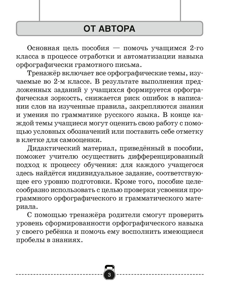 Пособие включает тренировочные задания, которые помогут развить орфографическую зоркость, снизить риск ошибочного написания слов на изученные правила, закрепить знания и умения, полученные на уроках русского языка.