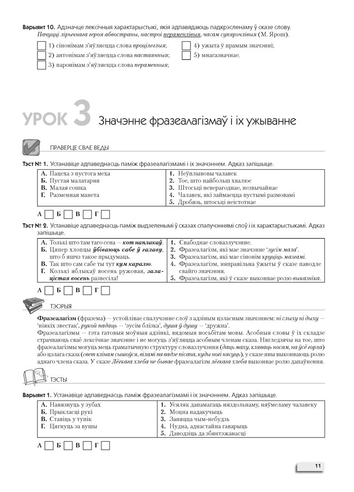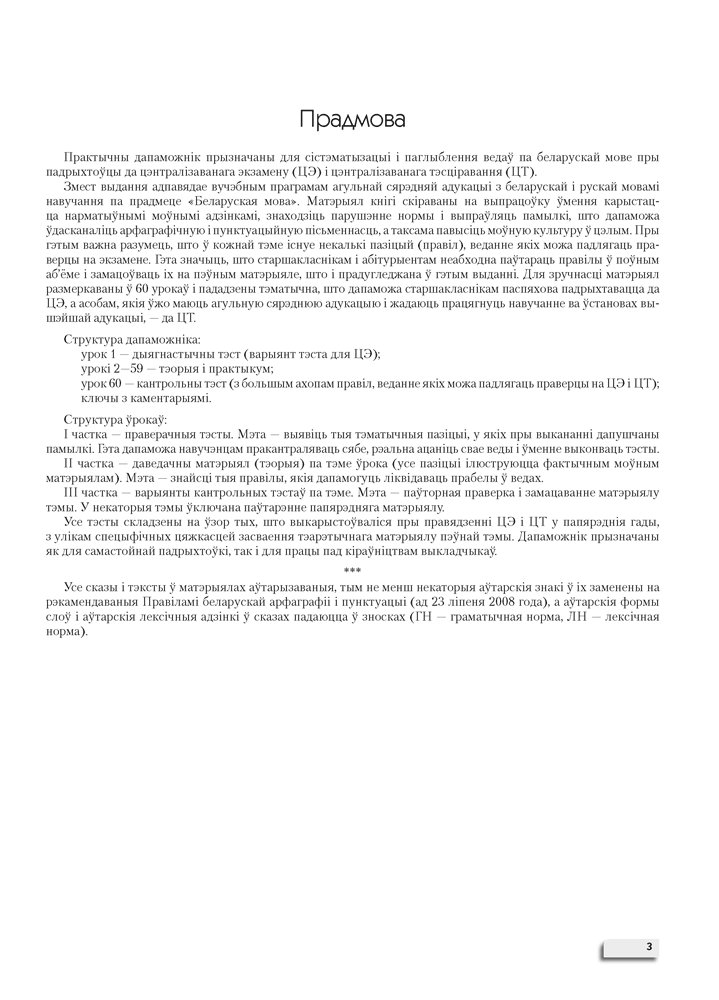 Дапаможнік прызначаны для сістэматызацыі і паглыблення ведаў па беларускай мове пры падрыхтоўцы да цэнтралізаванага экзамену і цэнтралізаванага тэсціравання. Выданне змяшчае даведачны матэрыял, практыкаванні, тэсты з адказамі і каментарыямі.