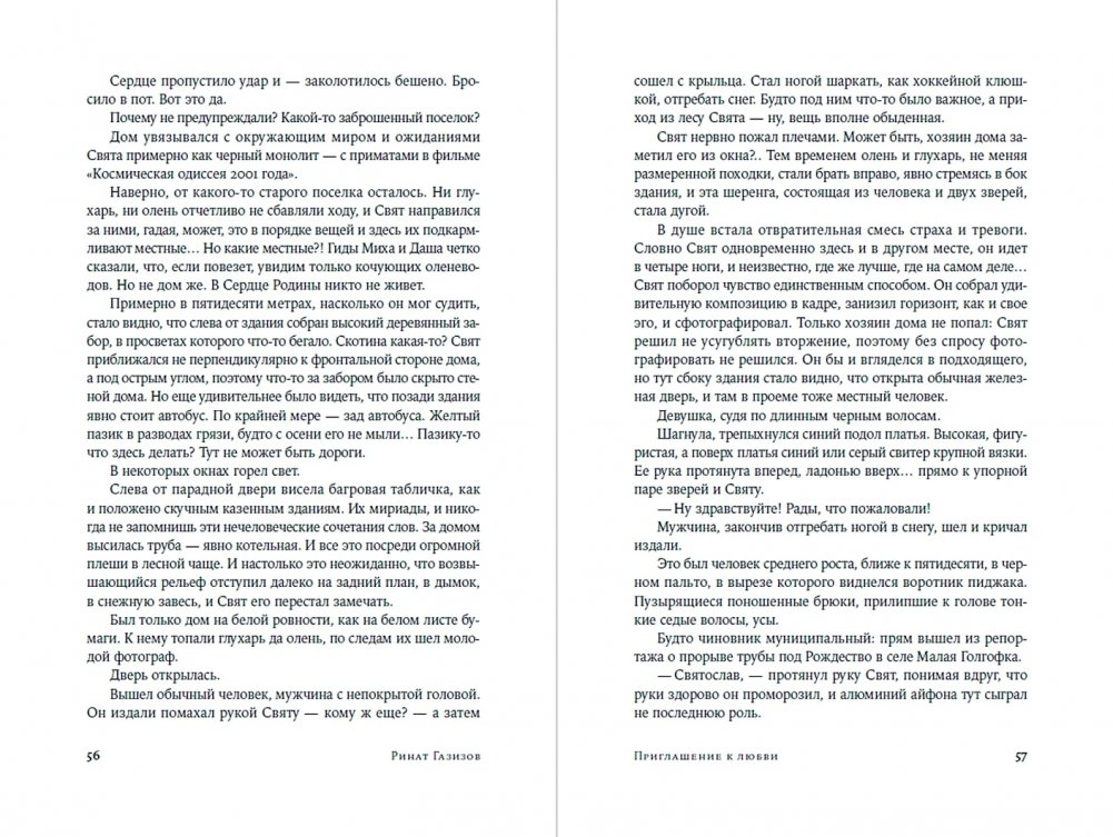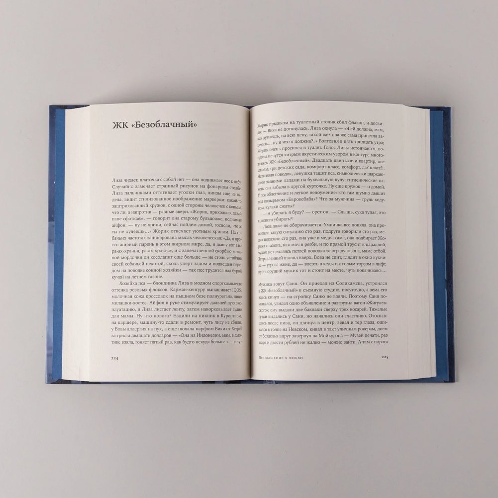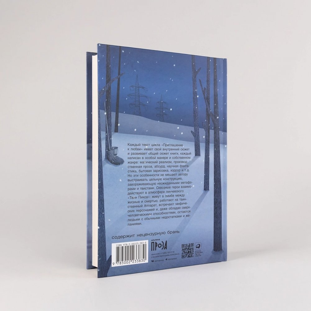 Каждый текст цикла «Приглашение к любви» имеет свой внутренний сюжет и развивает общий сюжет книги, каждый написан в особой манере и собственном жанре: магический реализм, производственная проза, абсурд, научная фантастика, бытовая зарисовка, хоррор и т. д. Но эти особенности не мешают автору выстраивать цельную конструкцию, завораживающую в неожиданных метафорах и твистах. Сквозные герои взаимодействуют в атмосфере линчевского «Твин Пикса»: живут в лимбе между жизнью и смертью, работают на таинственный Аппарат, встречают мифических персонажей и, даже обладая сверхчеловеческими способностями, остаются людьми с обычными недостатками и желаниями.