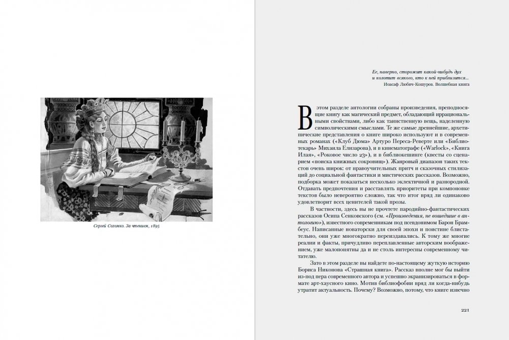 Эта книга — увлекательное путешествие в мир русской литературы, где главная героиня — сама книга. В антологии Юлии Щербининой собраны самые разные истории: от реалистичных зарисовок до мистических новелл, от сатирических сценок до трогательных воспоминаний о детстве. Пять разделов антологии расскажут о том, какую роль играла книга в жизни разных слоев общества, как работала книжная торговля, где за раритетные издания платили целые состояния и какие легенды придавали книгам мистический флер. В антологии представлены как широко известные российские авторы XIX–XX веков (И. Гончаров, А. Чехов, А. Куприн, М. Горький), так и полузабытые, чьи произведения также полны очарования.