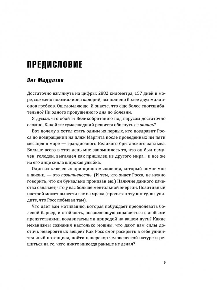 Предыдущая его книга, The World's Fittest Book, ставшая бестселлером по версии Sunday Times, посвящена физической форме. Теперь же Росс использует свой богатый опыт и уникальную выносливость, чтобы раскрыть секреты психологической подготовки, исследовать непоколебимость, упорство, смелость и дисциплину (все те качества, благодаря которым ему удалось превозмочь, казалось бы, непреодолимую боль и достойно ответить на самые разные вызовы), а также изучить практики спортсменов-экстремалов, военных, фитнес-гуру и психологов. Эта книга представляет собой новый взгляд на возможности человеческого тела и разума и дает четкий план, как стать более выносливым и жизнестойким — с какой бы проблемой вы ни столкнулись.