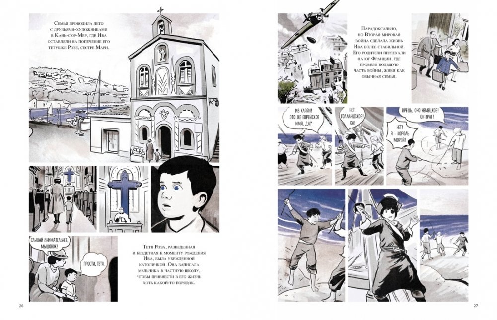 В издательстве «КоЛибри» с этой проблемой решили бороться нестандартно – и выпустили биографию «продавца пустоты» Ива Кляйна в формате графического романа. Тут и перфомансы с голыми женщинами в синей краске, и выставка без экспонатов, и «прыжок в пустоту» (ох уж эти наивные зрители середины XX века, как легко было удивить вас монтажом!), и, главное, объяснение, зачем ему все это понадобилось. Рассказано живо, нарисовано в стиле самого Кляйна, а в конце еще и репродукции и уникальные фотографии художника, предоставленные Фондом наследия Кляйна специально для этого издания.