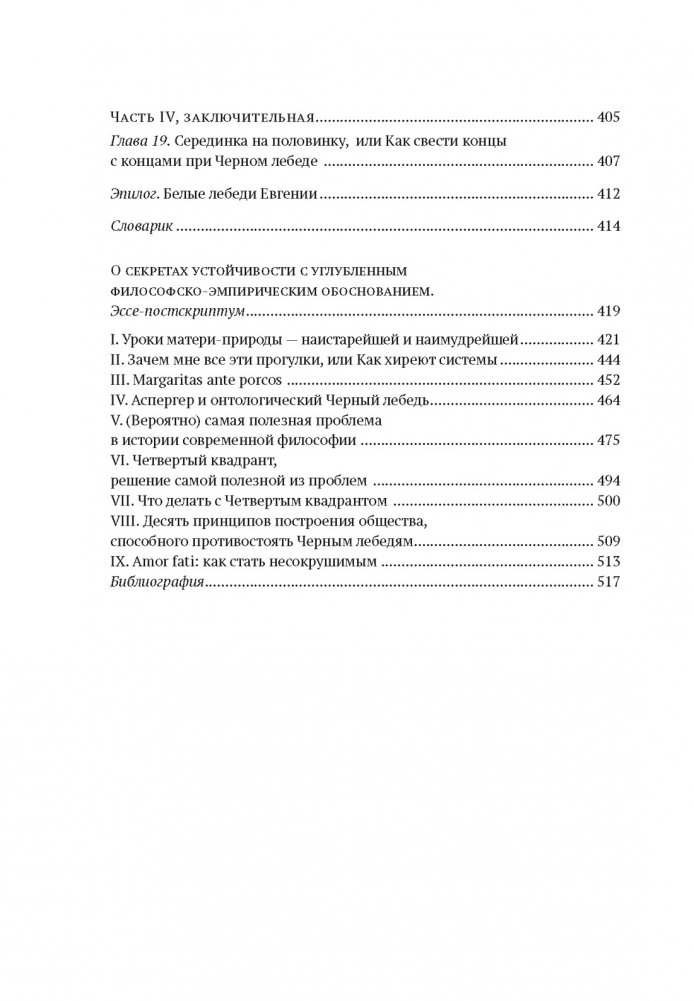 В написанном позже эссе-постскриптуме «О секретах устойчивости» Талеб дает остроумный отпор тем экономистам-ортодоксам, которые приняли созданное им антиучение в штыки.