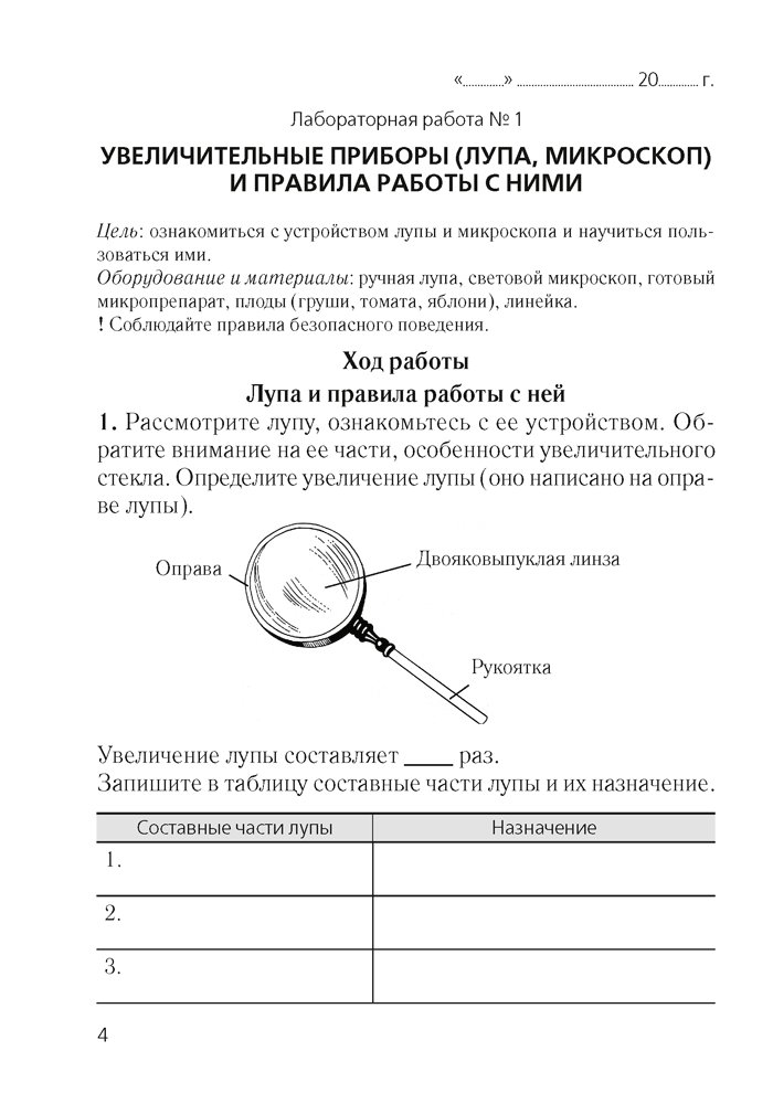 Тетрадь соответствует учебной программе и учебнику «Биология» для 6 класса. Она предназначена для более эффективного выполнения учащимися практической и лабораторных работ на уроках, а также во время учебных экскурсий. Использование тетради позволит не только сэкономить время при оформлении той или иной работы, но и сконцентрировать внимание на самых важных ее этапах. Приведенные задания разного уровня сложности помогут ученикам лучше усвоить и закрепить материал, а учителю — организовать дифференцированный подход к обучению биологии.