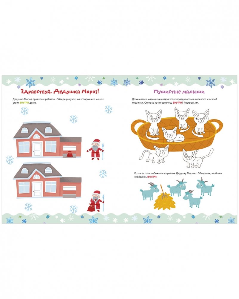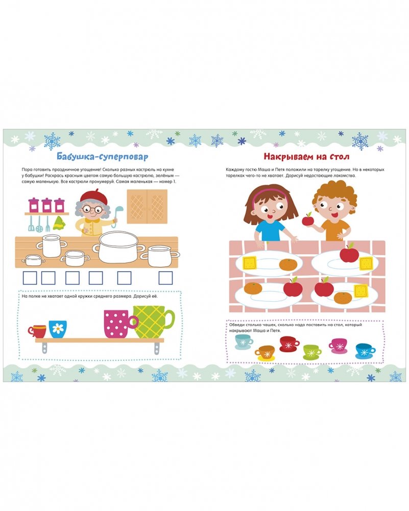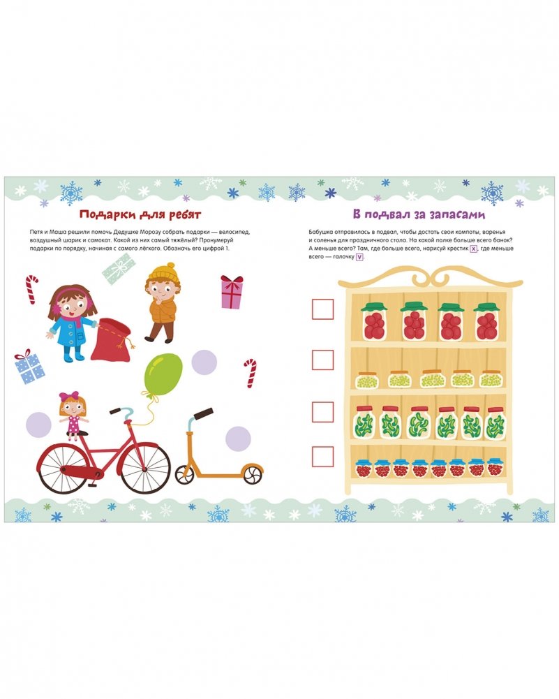 На ярких страницах ребята найдут множество заданий на логику, внимание и сообразительность, смешные рисовалки, лабиринты и задачки. Малыши познакомятся с обаятельными героями — бабушкой Зиной и ее внучкой Машей, помогут птенцу добраться до гнезда, посчитают снегирей, дорисуют недостающие ингредиенты для вкусного пирога и сосчитают снежинки. Сказочная зимняя атмосфера, красочные иллюстрации, остроумные головоломки, развивающие упражнения — девочкам и мальчикам точно не придется скучать!