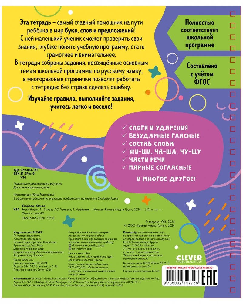 В тетради собраны задания, посвященные основным темам школьной программы по русскому языку, а многоразовые странички позволят заниматься без страха сделать ошибку!