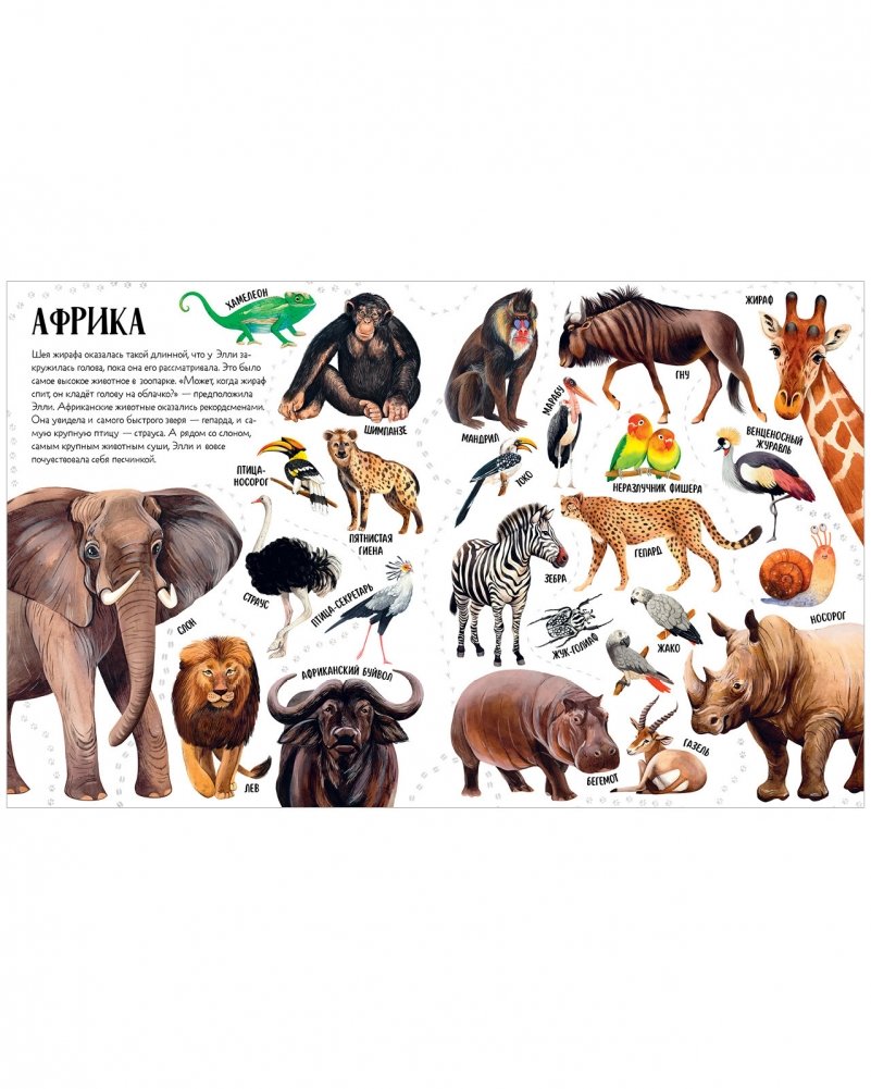 Малыши просто обожают разглядывать картинки, а в книге «Приключения улитки Элли в мире животных» есть не только яркие иллюстрации животных, но и милая история улитки, которая жила неподалеку от фермы и знала всех зверей вокруг. Однажды Элли заползла в ящик с фруктами и «приехала» в зоопарк, где познакомилась со всеми животными мира.
