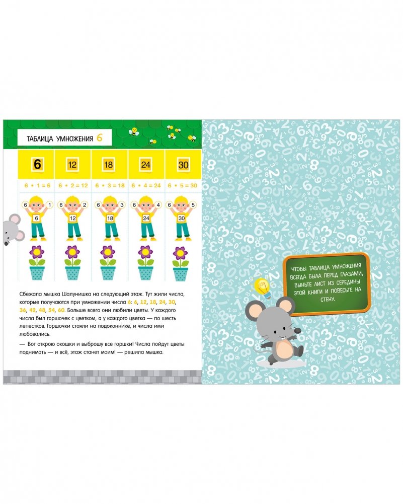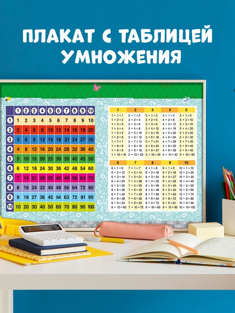 Для того чтобы таблица умножения все время была перед глазами и быстрее запоминалась, внутри книги есть лист с таблицей, который можно вынуть и повесить на стену.