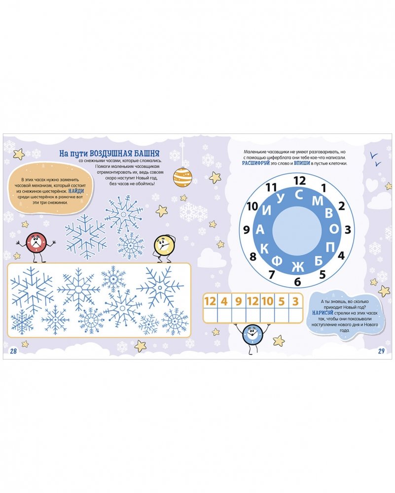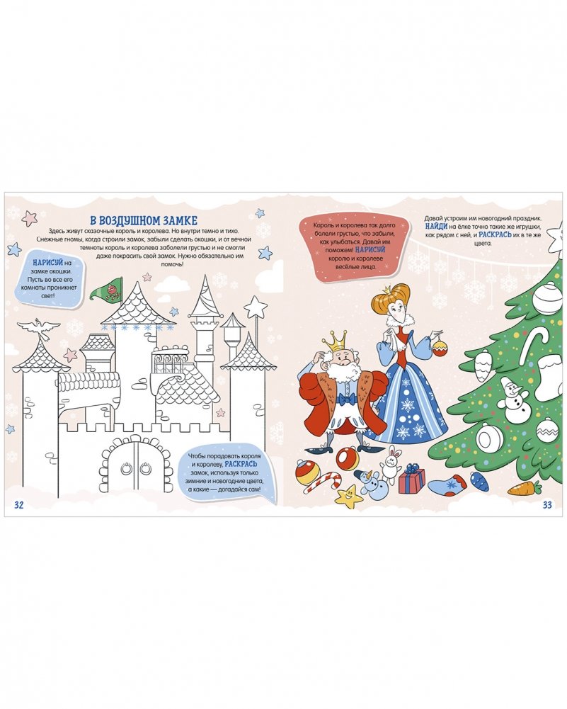 Чтобы вернуть пропажу и помочь Деду Морозу, ребенок пройдет увлекательный квест: будет разгадывать шифры и головоломки, раскрашивать и дорисовывать, прокладывать путь в лабиринтах и искать спрятанные предметы.