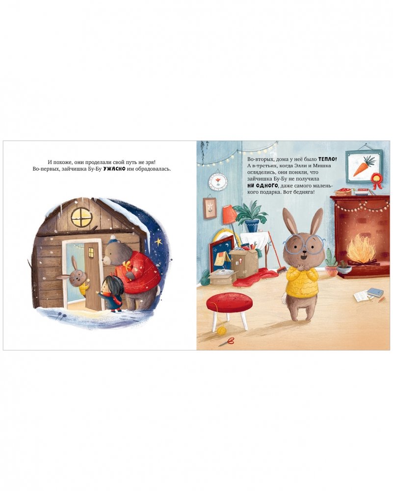 Новогодним утром Элли с Мишкой находят под ёлкой яркий свёрток. Вот только это подарок не для них! Чтобы отдать его настоящему хозяину, зайчишке Бу-Бу, друзья пускаются в трудный и опасный путь. Всё, что им известно, - этот подарок очень-очень важен...Трогатальная история о волшебстве дружбы, полная тепла и новогодних чудес!
