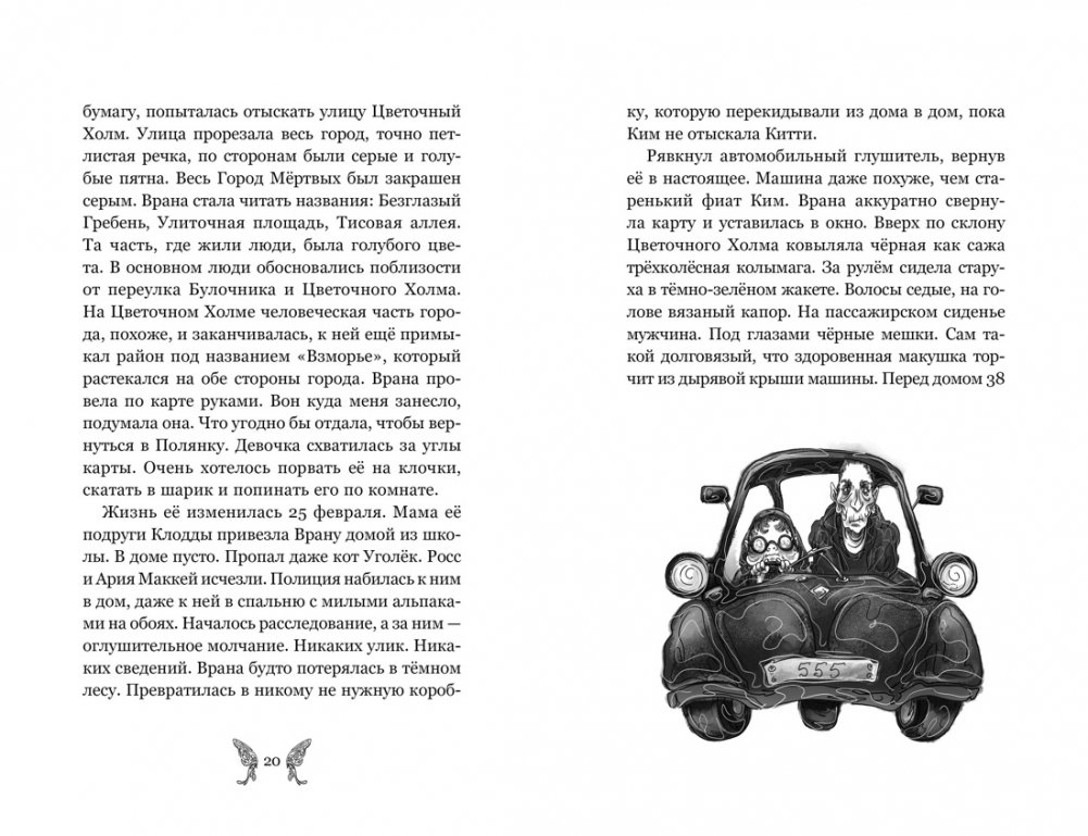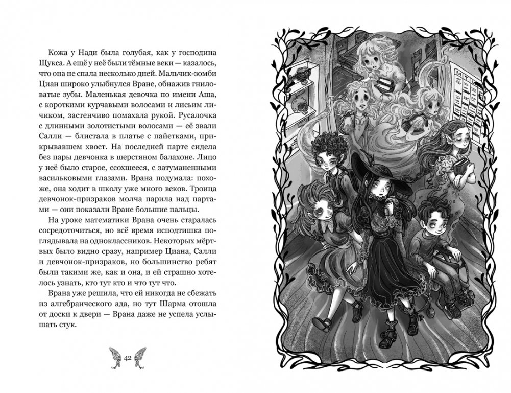 Именно здесь оказалась Врана Маккей, девочка с чёрными волосами, шляпой с вороновым крылом и… большой тайной. Её родители пропали, и единственное, что от них осталось, — чемодан с чёрной бабочкой внутри. Теперь Врана вынуждена жить в доме тёти в Замогильнике, самом странном месте на свете! В полнолуние тут проходит парад мёртвых, а по улицам бродит злобный гном-красноколпачник. А ещё, кажется, местные что-то скрывают… Неужели они что-то знают о семье Враны? Чтобы узнать правду, девочке придётся побороть свои страхи…