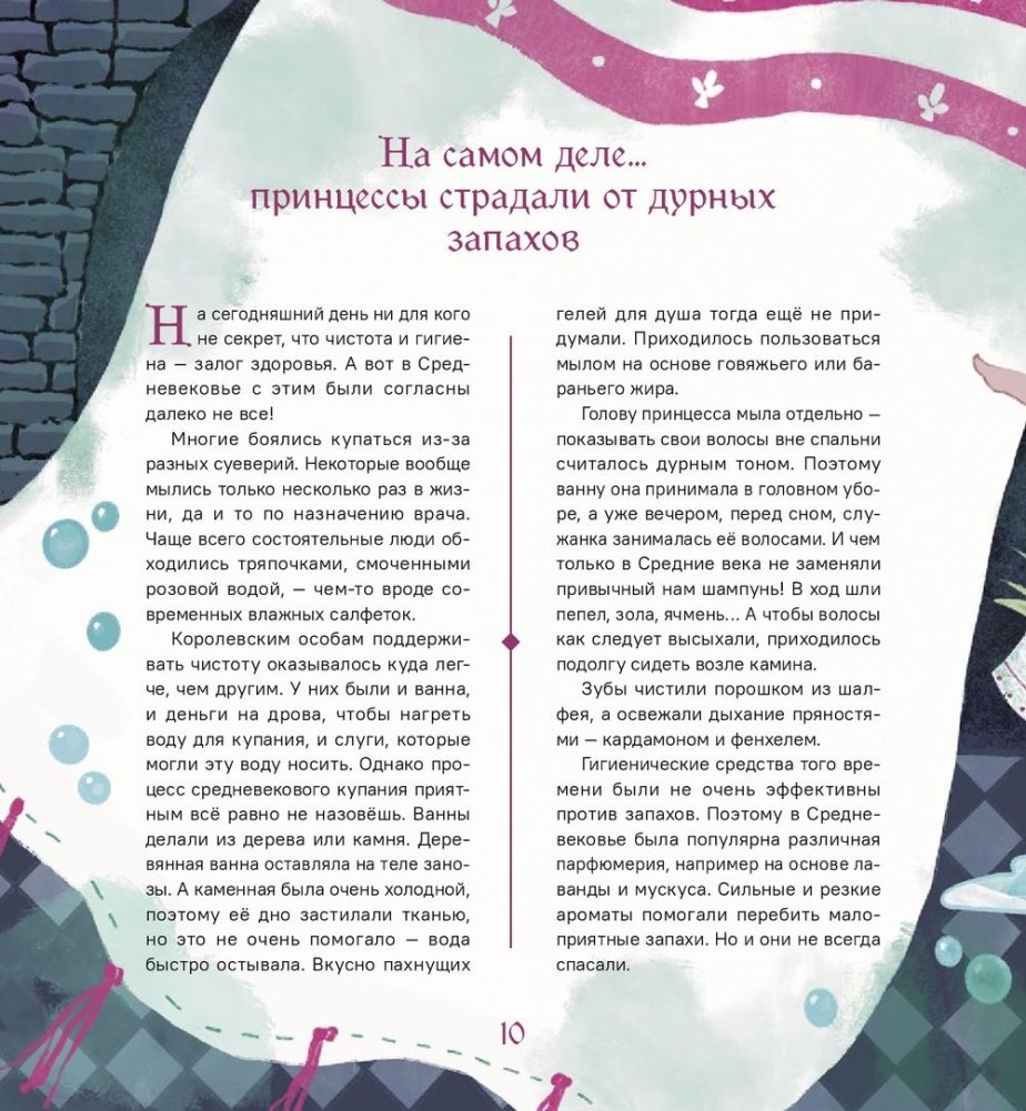 Представь себе, что ты встретилась с феей. И она может одним взмахом волшебной палочки превратить тебя в настоящую принцессу! Хочешь? Подожди-подожди, не торопись с ответом! Сначала прочитай эту книгу и подумай, готова ли ты к жизни во дворце? Там, между прочим, довольно холодно и не очень чисто… И совсем нет конфет! С принцами тоже не всё так просто, как показывают в мультфильмах. Тебе придётся учиться - и не только музыке и танцам. А если простудишься, лечить тебя станут пиявками и холодными ваннами. Но может быть, сейчас принцессам живётся легче? Об этом мы тоже расскажем: ведь и в наше время им нужно ежедневно много трудиться - королевский титул оказывается нелёгкой ношей. Для среднего школьного возраста.