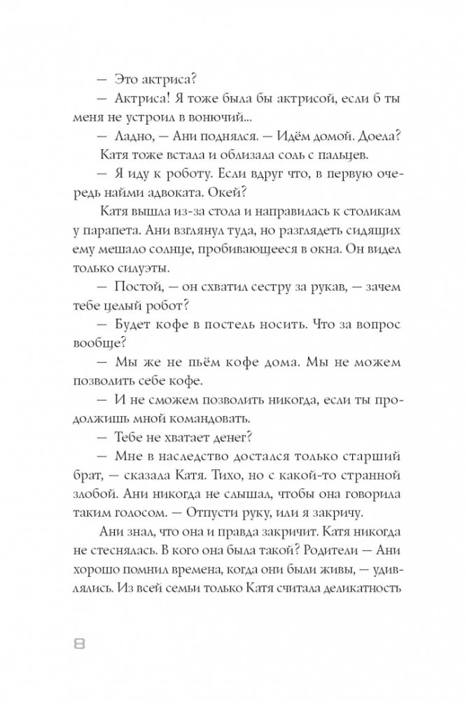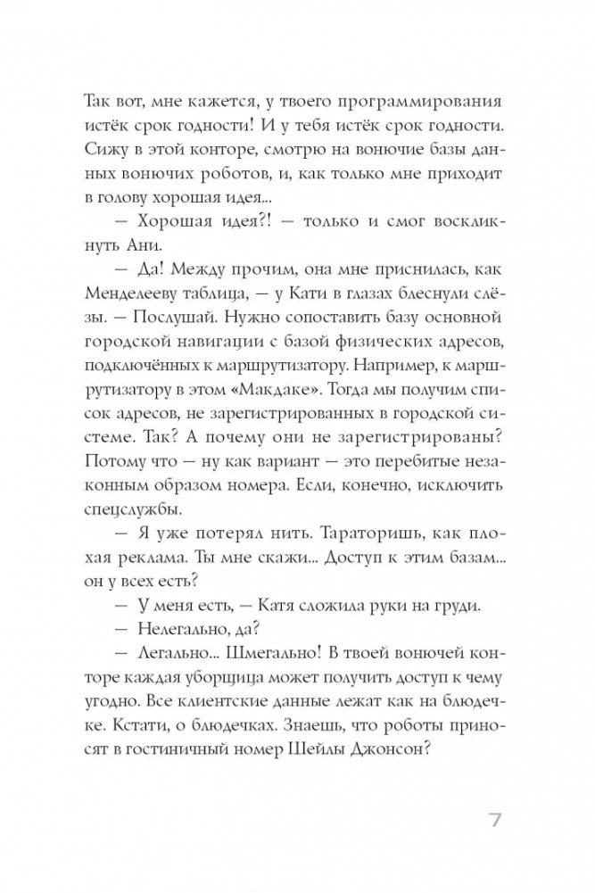 Катя всего-то и хотела, что угнать бесхозного робота с перебитыми номерами. Зачем? Ну, например, чтобы он приносил кофе в постель. Но пока она перебирала в планшете протоколы, по которым можно влезть в его алгоритмы, робот сам заговорил с ней. Он был весьма учтив и пригласил её на пробы. Как он узнал, что девушка мечтает стать актрисой?