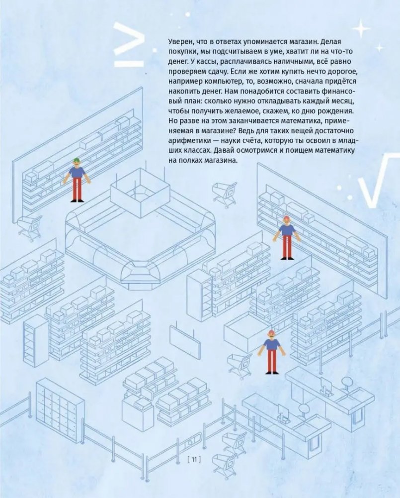 Что для вас математика? Числа, скучные формулы и непонятные теоремы... Или, наоборот, вдохновляющие линии графиков, совершенство снежинки и музыка любимого стихотворения? Эта книга найдёт чем удивить и тех, кто не дружен с царицей наук, и тех, кто уже успел влюбиться в неё! Автор книги - педагог и популяризатор науки Сергей Корнеев - предлагает надеть волшебные очки и увидеть магию математики там, где чисел и формул вроде бы и быть не должно: на футбольном стадионе, в картинной галерее, в зашифрованном послании и даже на тарелке с капустой. Математика - это не страшно, а страшно интересно.