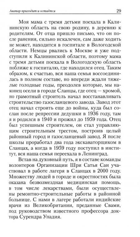 Это вторая книга автора. В ней он продолжил рассказ о влиянии на свою жизнь аватара Сатья Саи Бабы даже после его ухода из физического тела в 2011 году. Автор ощущает незримое присутствие Саи и даже получает от него помощь в опасных ситуациях, когда только вмешательство божественных сил позволяло избежать трагедии. Автор рассуждает об изменениях в сознании человека по мере приближения «Золотого века», а интересные сведения о загадке перерождения на личном опыте и биографические семейные аспекты автора, подкрепленные фотографиями, поистине уникальны. Трогательный рассказ о жизни и становления характера близкого друга автора, также ставшего в конце жизни преданным аватара, вдохновляет. Издание предназначено для широкого круга читателей, идущих путем духовного развития.