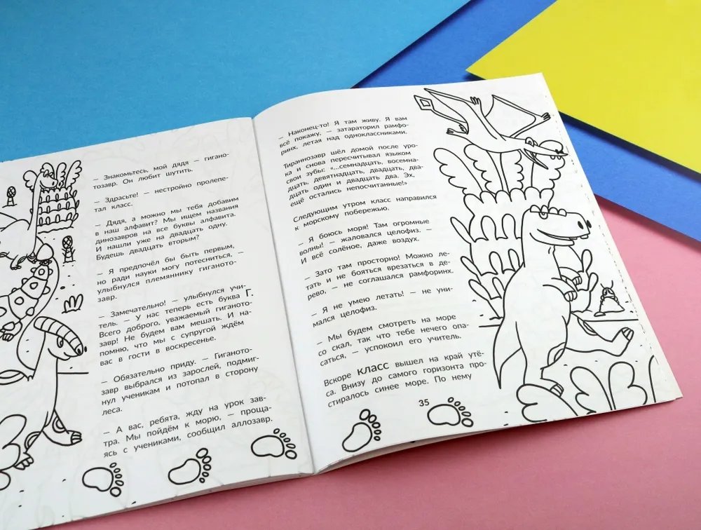 Маленькому тираннозавру непременно нужно узнать, сколько у него зубов, а игуанодон мечтает научиться подписывать свои картины. Вместе с друзьями они решают отправиться в школу, чтобы научиться считать и познакомиться со всеми буквами алфавита. Следуй за героями и узнай, где в доисторическом лесу прячутся буквы, потренируйся в чтении и счёте, помоги динозаврикам выполнить задания учителя аллозавра. В середине книги ты найдёшь плакат с динозаврами и алфавитом, благодаря которому не только легко запомнишь каждую букву, но и научишься быстро читать и произносить самые сложные названия доисторических ящеров. Для младшего школьного возраста.