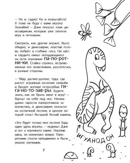 Как быть, если хочешь попасть в команду самых-самых, но плавать, вытягивать шею до неба или хотя бы громко гудеть у тебя не получается? Маленький игуанодон Даня готов поверить, что он неумеха, как вдруг благодаря птеродактилю обнаруживает у себя особый "рисовальный" коготь! Им можно нарисовать реку, скалу, других динозавров и даже декорации к театру теней, который умеет показывать его новый друг! Подготовь фломастеры, открой книжку и помоги маленькому динозаврику отыскать свои способности и подготовиться к театральной премьере. Заодно ты узнаешь, чем отличаются динозавры, научишься показывать театр теней, поиграешь в прятки в доисторическом лесу и потренируешься в счёте и чтении. Для младшего школьного возраста.Как быть, если хочешь попасть в команду самых-самых, но плавать, вытягивать шею до неба или хотя бы громко гудеть у тебя не получается? Маленький игуанодон Даня готов поверить, что он неумеха, как вдруг благодаря птеродактилю обнаруживает у себя особый "рисовальный" коготь! Им можно нарисовать реку, скалу, других динозавров и даже декорации к театру теней, который умеет показывать его новый друг! Подготовь фломастеры, открой книжку и помоги маленькому динозаврику отыскать свои способности и подготовиться к театральной премьере. Заодно ты узнаешь, чем отличаются динозавры, научишься показывать театр теней, поиграешь в прятки в доисторическом лесу и потренируешься в счёте и чтении. Для младшего школьного возраста.