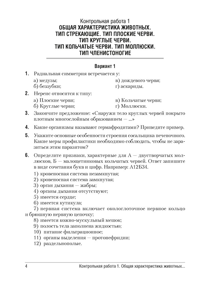 Сборник содержит контрольные и самостоятельные работы по биологии для 8 класса, представленные в четырех вариантах. Все варианты включают разноуровневые задания, которые разработаны согласно нормам оценки результатов учебной деятельности учащихся.