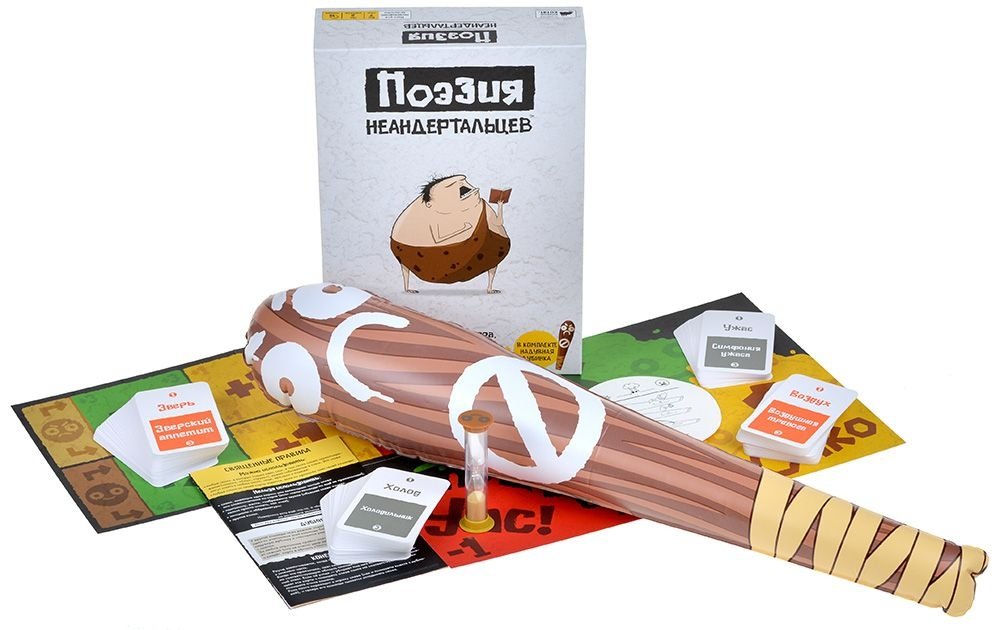 Как вы знаете, у двух племён в каменном веке разговор короткий: по углам пещеры шмыг, дубинку хвать, и начинают раздавать под пещерный бит! Задача артиста проста – объяснить слова на картах так, чтобы вас поняли, а вы не получил по башке. И чтобы вам не прилетало лишний раз, придётся делить сцену с другими поэтами – а значит, говорить быстро и только односложными словами!