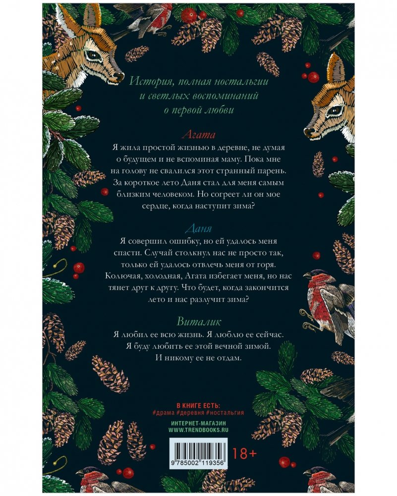 Агата. Я жила простой жизнью в деревне, не думая о будущем и не вспоминая маму. Пока мне на голову не свалился этот странный парень. За короткое лето Даня стал для меня самым близким человеком. Но согреет ли он мое сердце, когда наступит зима?