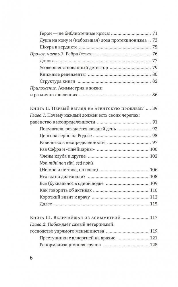 В своей резко провокационной и одновременно предельно прагматичной книге неподражаемый Нассим Талеб рассказывает, как важно идентифицировать и фильтровать чушь, отличать теорию от практики, поверхностную компетентность от настоящей. Вы узнаете, что такое рациональность в сложных системах и реальном мире, симметрия и асимметрия и в чем состоит логика принятия рисков. Наполняя новым смыслом привычные понятия, такие как «справедливое общество», «профессиональный успех», «личная ответственность», и не боясь задеть эго признанных кумиров, Талеб развенчивает лицемерие идеологов военных интервенций в Ирак и Ливию; фиаско нобелевских лауреатов по экономике, разоривших банки и инвестиционные фонды; лживых религиозных проповедников. На примерах Хаммурапи и Иисуса Христа, римских и византийских императоров, философов-стоиков и современных успешных бизнесменов Талеб показывает, что главное качество, объединяющее их всех, — «ставить на кон свою шкуру и душу», а не переносить риск на других.