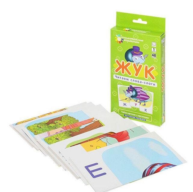 Обучение грамоте. Жук. Читаем слова-слоги. Набор карточек
