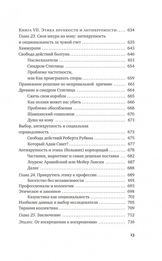«Антихрупкость» — книга уникальная: она рассказывает о ключевом свойстве людей, систем и не только, свойстве, у которого до сих пор не было названия. В мире, где царит неопределенность, нельзя желать большего, чем быть антихрупким, то есть уметь при столкновении с хаосом жизни не просто оставаться невредимым, но и становиться лучше прежнего, эволюционировать, развиваться. Талеб формулирует простые правила, которые позволяют нам преодолеть хрупкость и действовать так, чтобы непредсказуемая неопределенность, тот грозный и внезапный Черный лебедь, не причинила нам вреда — и более того, чтобы эта редкая и сильная птица помогла нам совершенствоваться. Для этого следует в первую очередь осознать: мы по природе своей антихрупки и не должны позволять кому бы то ни было лишать нас этого чудесного свойства.