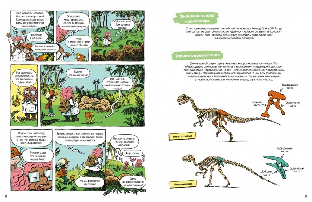 Добро пожаловать в леса юрского периода! Эта книжка комиксов расскажет много интересного о динозаврах: чем они питались, как охотились и где обитали. Ты узнаешь, почему ученые до сих пор спорят о вымирании динозавров и какие современные животные являются прямыми потомками этих гигантских рептилий!