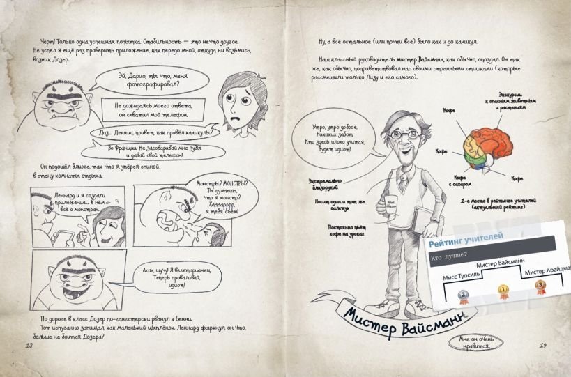 Что бы вы сделали, если ваш лучший друг изменился после каникул? Леннард вернулся в школу совершенно другим: смешно говорил, бегал в резиновых сапогах и вёл себя так, как будто его подменили. Прошло много времени, пока я не понял, что за этим стоит большой гоблинский секрет, а мой скетчбук станет в конце концов важной уликой для разгадки происходящего. Вместе со странным Леннардом (а это точно он?), его сестрой-блогером Кларой, которая постоянно постит в соцсетях, и прожорливым Умпфом мы попали в такую переделку, что… Не спойлерить дальше? Если коротко, то это - главное приключение в моей жизни! Хотя я не уверен, что оно закончилось, ВЕДЬ ГОБЛИНЫ СРЕДИ НАС! "История Дарио Леоне - художника комиксов и полного ботаника - настолько увлекательна, настолько хорошо проиллюстрирована, что ребенок не захочет откладывать книгу. Прямое попадание!" (Stuttgarter Zeitung) "...Книга легко читается даже теми, кто не любит читать, предлагает короткие фрагменты текста и много интересного". (Heilbronner Stimme)