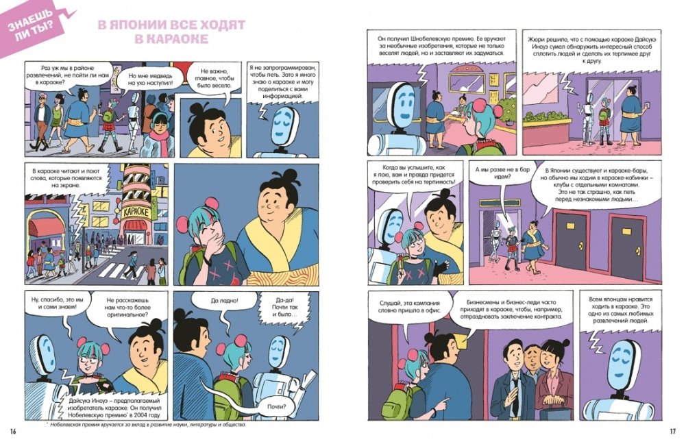 Добро пожаловать в Японию! Эта книжка комиксов расскажет тебе про традиции жителей Страны восходящего солнца. Ты узнаешь, что такое бонсай, какие существуют виды кимоно, кто придумал караоке и многое другое!