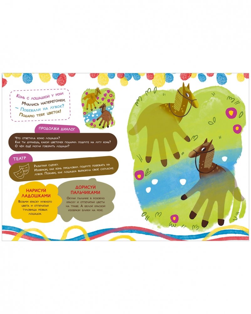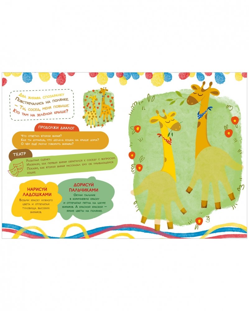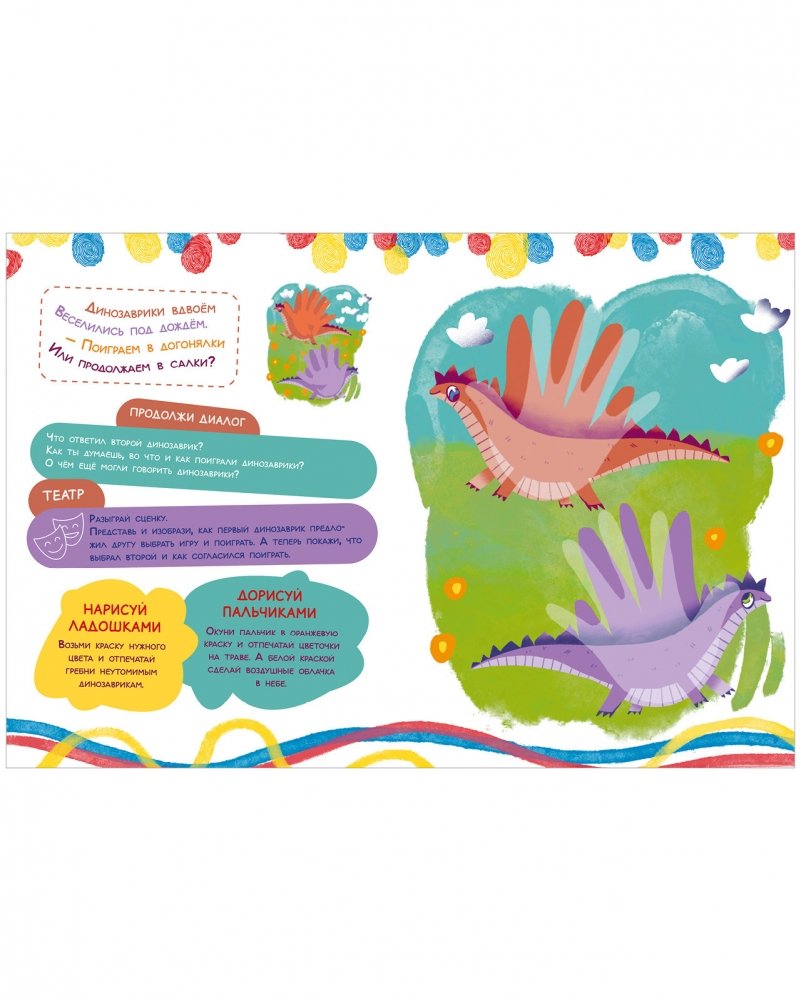 За одно занятие по книжке «Рисуем ладошками и пальчиками» ребенок дорисует эскиз картинки, выучит короткое ритмичное стихотворение. А еще у вас будет тема для обсуждения после занятия.