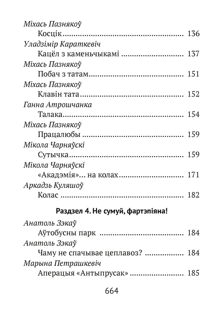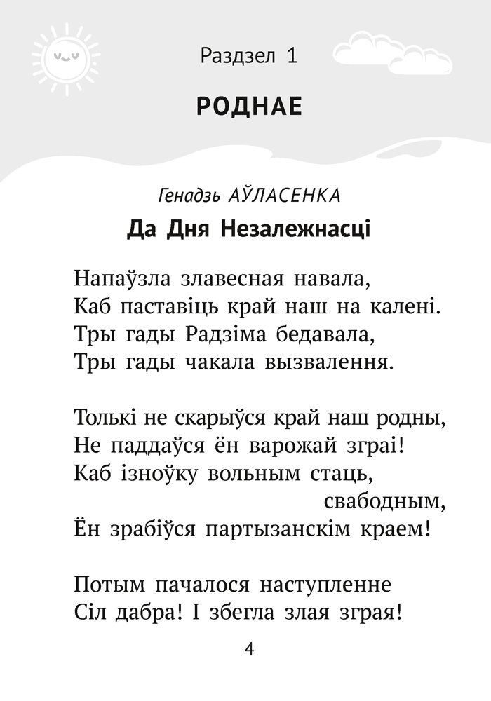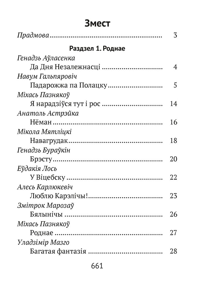 Хрэстаматыя ўключае найбольш каштоўныя і значныя творы для пазакласнага чытання, якія пакуль не ўваходзяць у спіс абавязковых для прачытання. Паэзія і проза сучасных пісьменнікаў, творы любімых класікаў пазнаёмяць маленькіх чытачоў з гісторыямі пра знакамітых суайчыннікаў, пра родныя мясціны і нават пра касмічныя прыгоды.