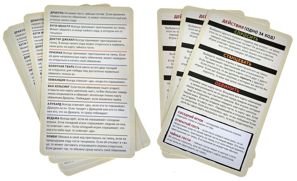 "Вечеринка Дракулы" – это игра на дедукцию. Танцуйте с другими монстрами, задавайте наводящие вопросы и первым отгадайте роли остальных. Каждый гость уникален, и у каждого есть своя способность, а у некоторых даже свои условия победы!
