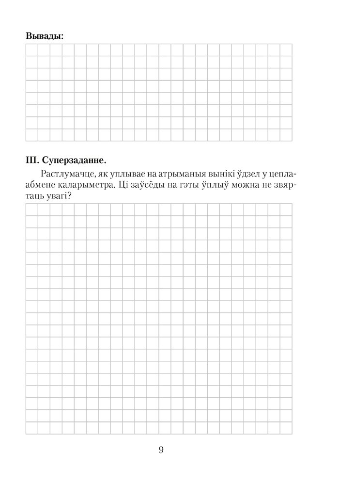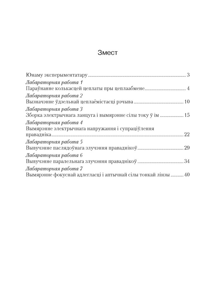 Сшытак падрыхтаваны ў адпаведнасці з вучэбнай праграмай і з’яўляецца складнікам вучэбна-метадычнага комплексу па фізіцы для 8 класа. У дапаможніку прадстаўлены алгарытмы выканання лабараторных работ, якія прадугледжваюць вымярэнні і вылічэнні фізічных велічынь, уменне рабіць самастойныя вывады, даваць грунтоўныя адказы на кантрольныя пытанні. Выкарыстанне сшытка скарачае i аблягчае працу вучня i настаўнiка пры афармленнi i праверцы работ, вызваляе час для выканання творчых заданняў.
