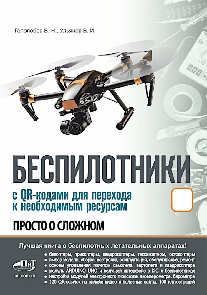 Рассматриваются характеристики наиболее популярных моделей квадрокоптеров. Даются полезные советы по их безопасной эксплуатации в различных погодных условиях. Большое внимание уделено самостоятельной сборке, электронной начинке, настройке и ремонту квадрокоптеров.