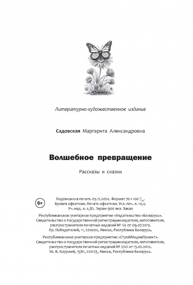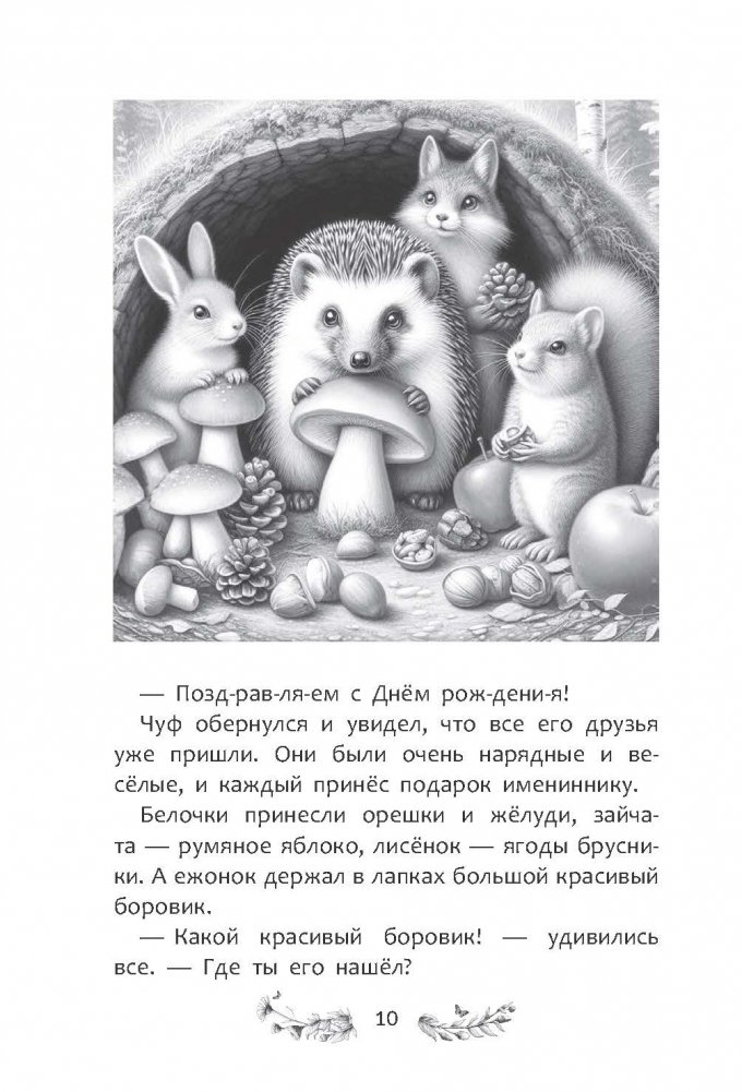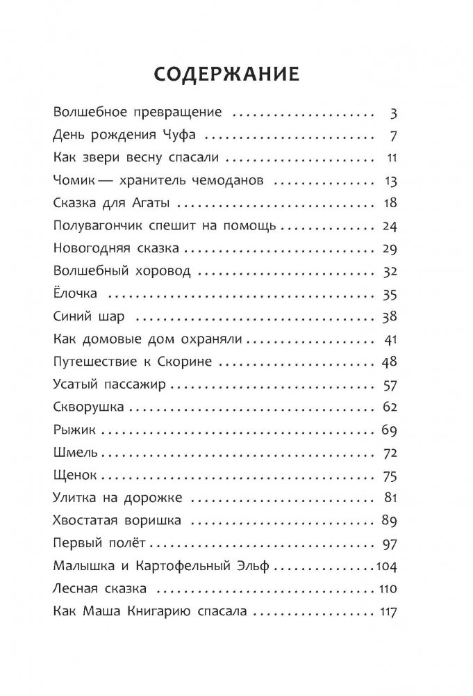 В сборник входят рассказы и сказки о животных, о природе, о дружбе, о волшебстве и приключениях. В них рассказывается, как гусеничка превращается в бабочку, а ёжик Чуф узнаёт, что такое настоящая дружба, как маленький воробьишко помогает мальчику поверить в сказку, а у ёлочки сбывается мечта, как щенок находит настоящий дом, а котёнок-пассажир возвращается домой, как аистёнок Буся научился летать, а полувагончик спас целый город. Сказки помогут читателям совершить путешествие к Скорине и в страну Книгарию…