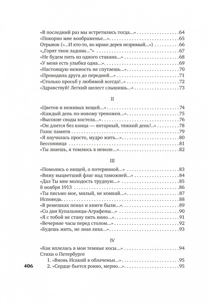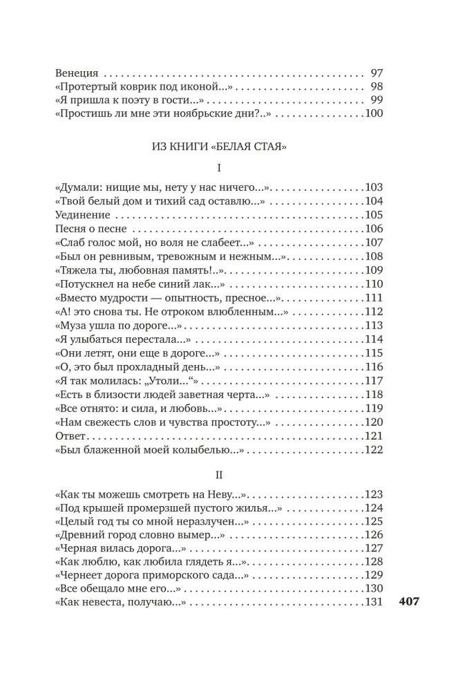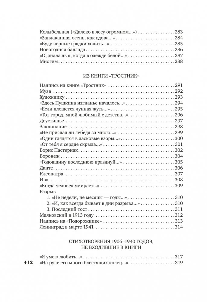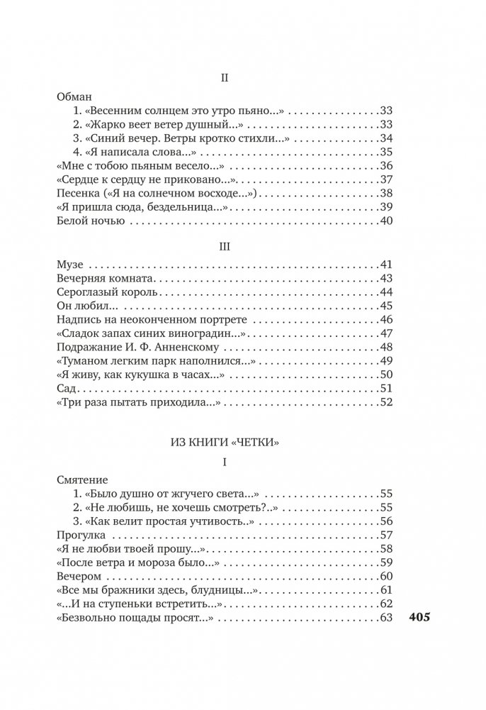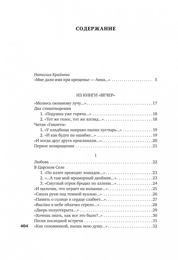 В настоящем издании собраны стихотворения из опубликованных до 1940 года книг «Вечер», «Четки», «Белая Стая», «Подорожник», «Аnnо Domini», «Тростник», а также не входившие в книги стихотворения этого периода. Тексты сверены по автографам, хранящимся в государственных архивах и частных собраниях, а также по первым публикациям в периодической печати. Сохранены особенности авторской орфографии, пунктуация подлинников, соблюдается по возможности вид записи произведений. Том снабжен предисловием и примечаниями, подготовленными Н. И. Крайневой.