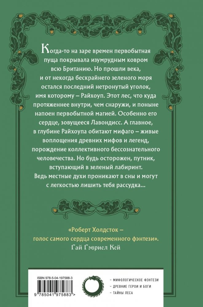 Лес Мифаго — это удивительный мир, сотканный из историй ирландской и английской мифологии, великий лес, окутанный тайнами и легендами, в сердце которого находится Лавондисс… Высшее царство, источник всех мифов. Кристиан Хаксли и его брат Стивен отправляются в Райхоупский лес, чтобы раскрыть его тайны. Но то, что они в нем обнаружат, превзойдет все их ожидания. Юная Таллис тоже отправляется в лес, в надежде найти своего брата Гарри. С помощью масок, магии и подсказок дедушки она обнаружит Лавондисс, прекрасное и устрашающее место, где ей придется столкнуться с мифаго.