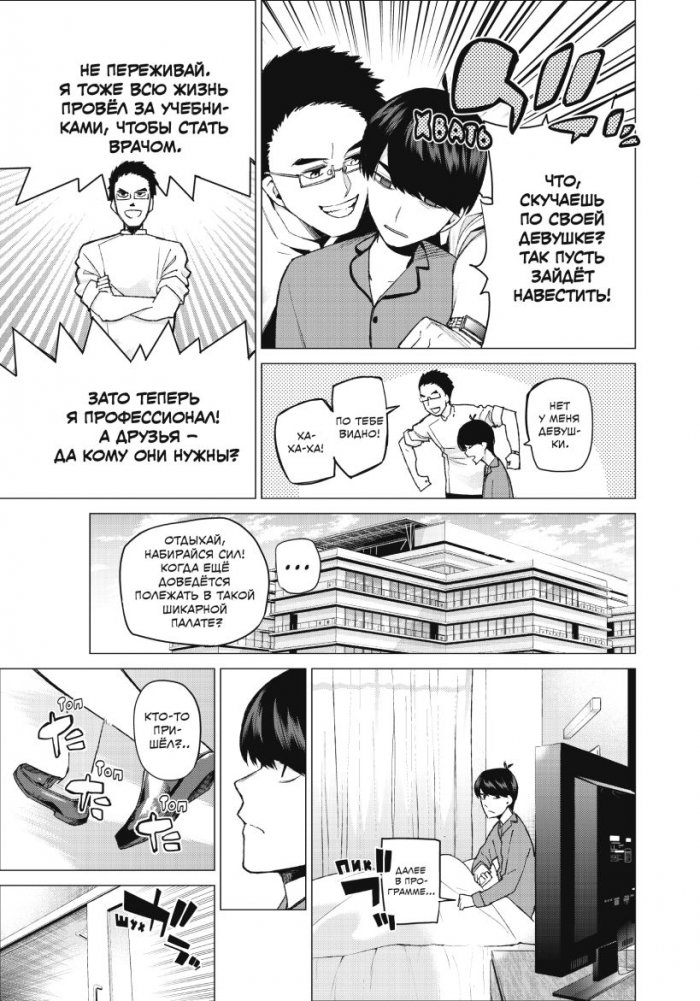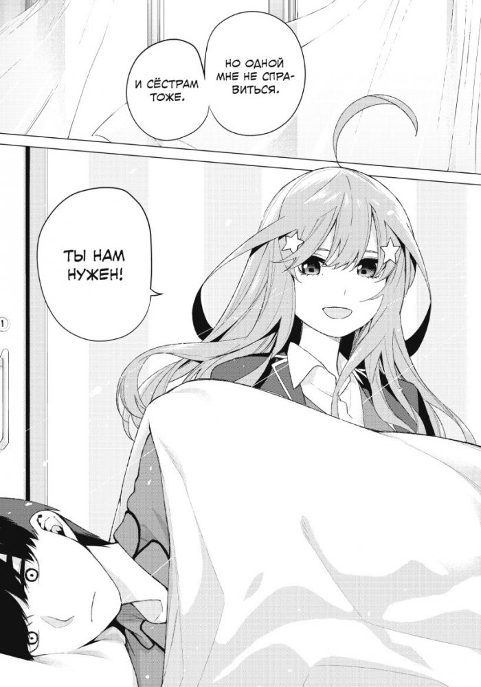 С пятерняшками не соскучишься: что ни день, то новые горести и радости. Нино и Ицуки серьёзно ссорятся и обе уходят из дома. Нино селится в отеле, а Ицуки у Футаро. Футаро пытается их помирить и заодно рассказывает Нино про таинственную девочку из своего прошлого, после встречи с которой он стал совсем другим человеком...