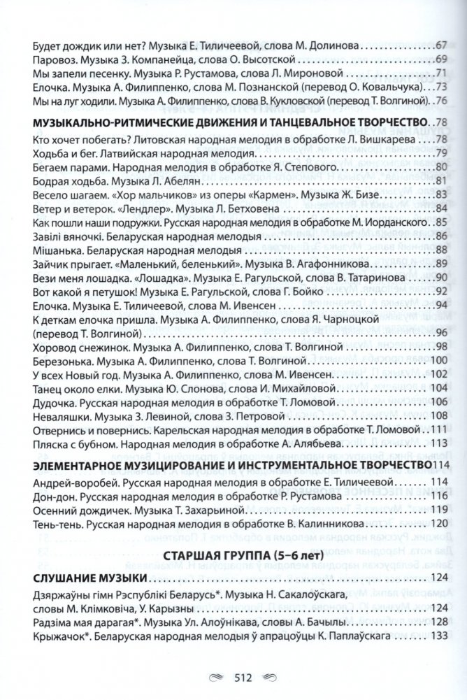 Пособие включает музыкальный репертуар, рекомендуемый учебной программой дошкольного образования по образовательной области "Музыкальное искусство" (слушание музыки, пение, пение и песенное творчество, музыкально-ритмические движения и танцевальное творчество, элементарное музицирование и инструментальное творчество) для воспитанников от 4-х до 7-ми лет.