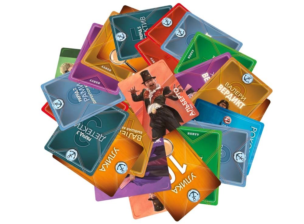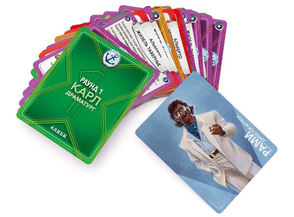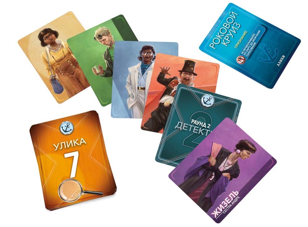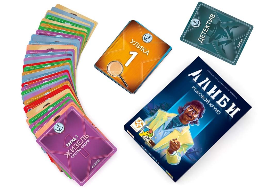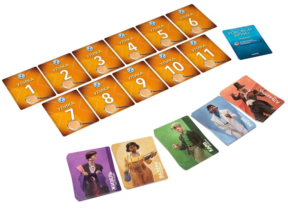 В состав настольной игры Алиби. Роковой круиз входит: 60 карточек и правила игры.