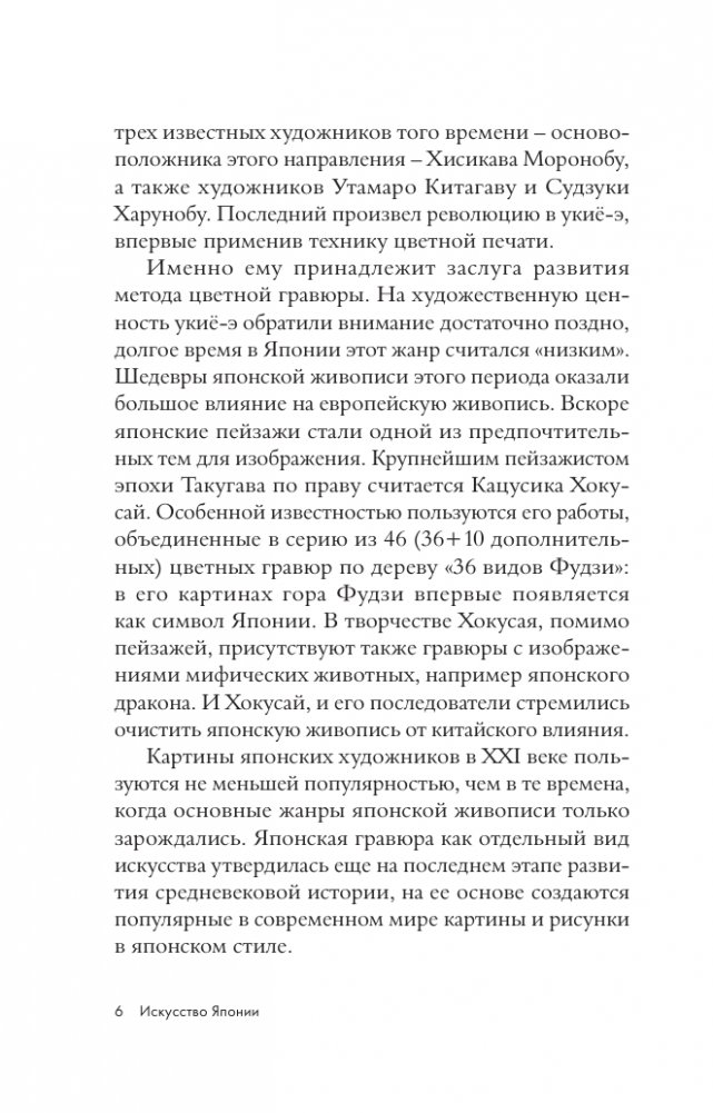 Искусство Японии ярко выделяется своей необычной эстетикой на общем фоне мировой культуры, и для западного человека оно кажется очень притягательным, загадочным и непостижимым. Японская живопись — одна из самых древних и красивейших в мире. Как и любая другая, она имеет свою длинную историю. Японскую живопись можно разделить на несколько периодов по техникам и особенностям. Это популярные направления японского изобразительного искусства ямато-э, суми-э и укиё-э и целая плеяда знаменитых мастеров, таких как: Кано Эйтоку, Кано Санраку, Тоё Сэссю Хисикава Моронобу, Утамаро Китагава и Судзуки Харунобу, Кацусика Хокусай, Утагава Хиросигэ и другие.