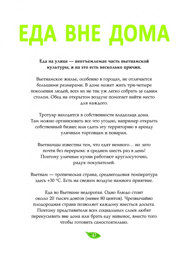 И не будем забывать про вкуснейшие рецепты: домашние соусы и приправы, вьетнамские блинчики и весенние рулеты, говяжий суп с лапшой, нэмы, жареная утка, карамелизованная свинина, флан с кокосовым молоком…
