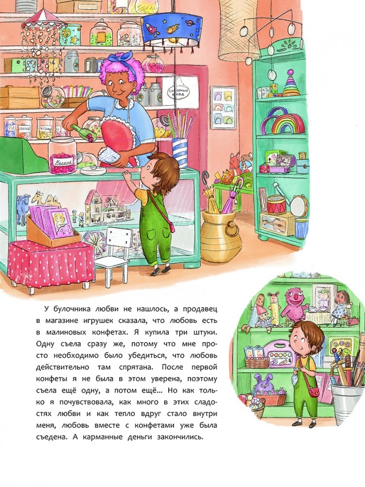 На день своего рождения мама попросила подарить много любви — и ничего больше. Но где её взять? В киоске не купишь, а нарисовать не получается. И вообще, как понять, какого цвета любовь? И почему мама говорит, что любви много даже в обычном бутерброде, а дедушка утверждает, что она спрятана в бабушкиных руках?