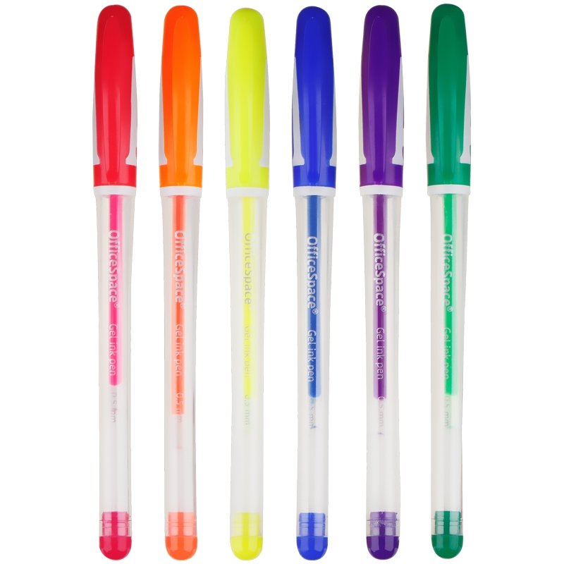 Набор гелевых ручек OfficeSpace – это удобство в использовании и отличное качество. Внутри ручки в прозрачном корпусе – гелевые чернила, которые ярко пишут на бумаге. На каждой модели есть колпачок с клипом – можно закрепить её на одежде или тетради. Диаметр пишущего узла 0,5 мм, благодаря чему ручка мягко пишет без нажима. Цвета чернил: синий, зеленый, фиолетовый, оранжевый, желтый, красный. В наборе 6 ручек, упаковка – чехол из ПВХ с европодвесом.