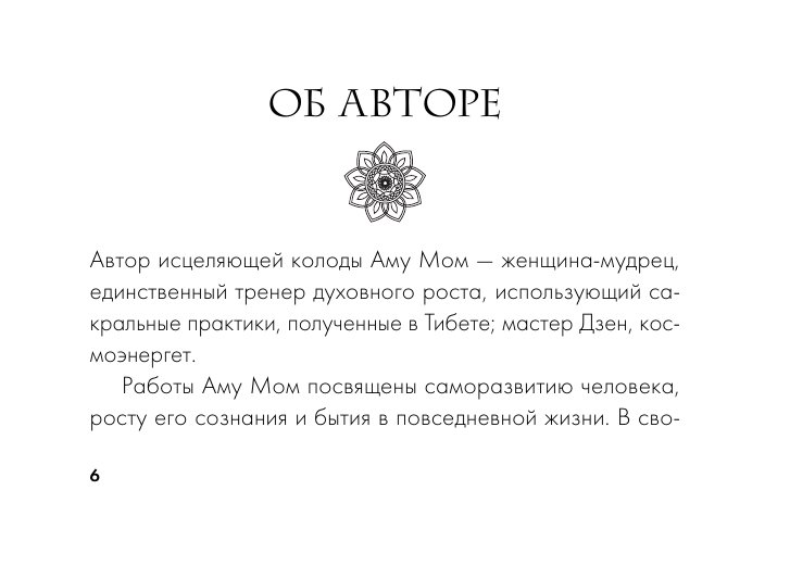 Аму Мом — единственный тренер духовного роста, использующий сакральные практики, полученные в Тибете; биоэнерготерапевт, мастер Дзен, космоэнергет. Исцеляющие карты — Ключ к энергиям Вселенной, которые помогают людям преодолевать трудности и находить решения сложных задач. Уникальная авторская колода — эффективный инструмент работы с энергетическими центрами в теле. Она поможет убрать блокировки и ограничения, которые мешают развитию, активирует потоки, которые принесут в вашу жизнь перемены к лучшему. Вы найдете причины проблем в разных сферах жизни и поймете, как их устранить. Колода научит взаимодействовать с энергией Вселенной, распределять ее по чакрам и направлять в нужное русло, чтобы достичь гармонии и просветления. Вы возьмете контроль над эмоциональным состоянием, улучшите отношения с окружающими, услышите голос своей интуиции. Медитативные карты дадут ответы на каждый вопрос, откроют тайны исцеления и помогут изменить судьбу, стать уверенными в завтрашнем дне и повысить самооценку. В комплект входят 56 карт и детальное руководство по работе с ними.
