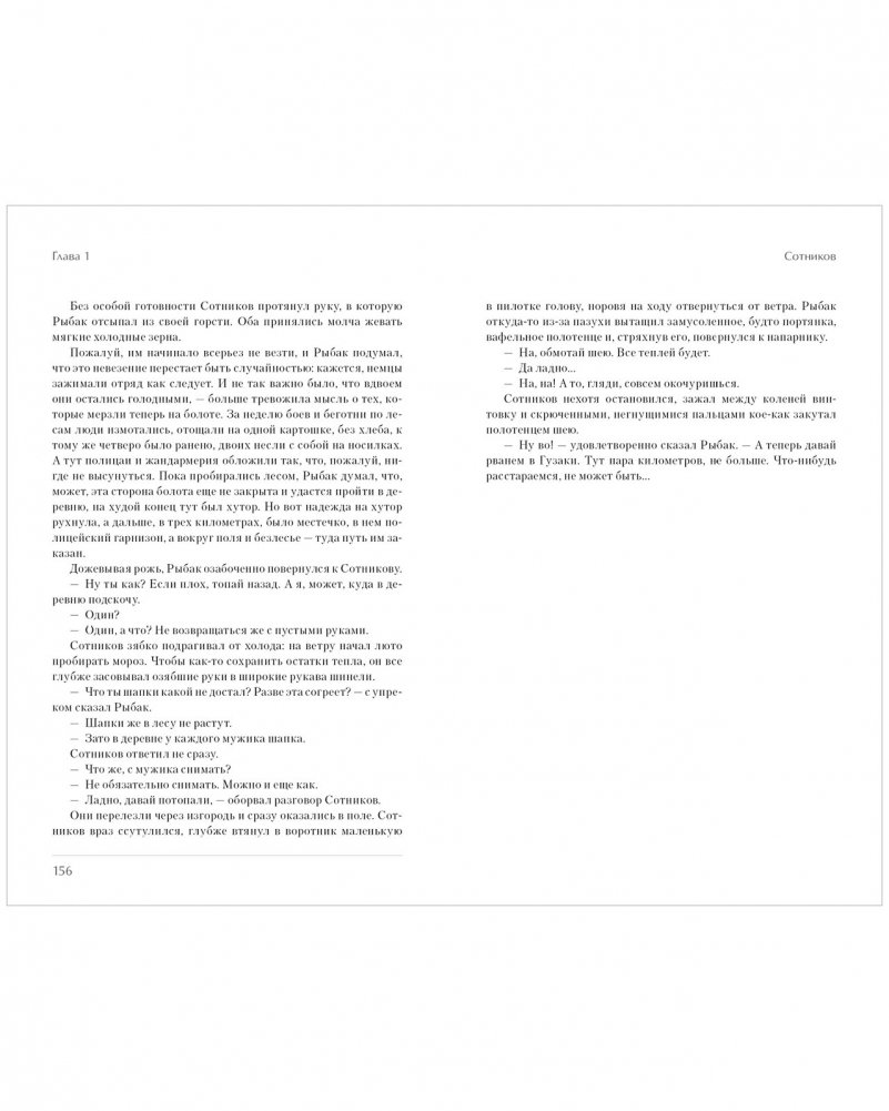 О том, как в момент нечеловеческих испытаний оставаться человеком рассказывает и повесть «Сотников». Главный герой сталкивается с физическими и моральными испытаниями, которые ставят его на грань жизни и смерти. Стремление выжить и сохранить человечность в условиях войны становится центральной темой повести.
