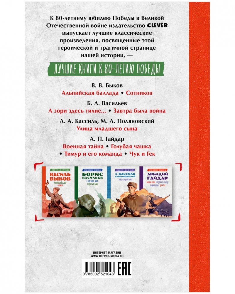 К 80-летию Победы в Великой Отечественной войне издательство Clever представляет коллекцию лучших классических произведений, посвященных этой героической и трагической странице русской истории.